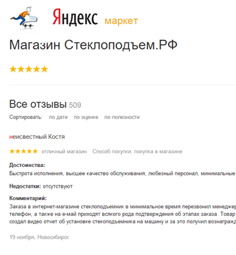 Интернет-магазин Стеклоподъем.РФ работает официально. Наше юридическое лицо