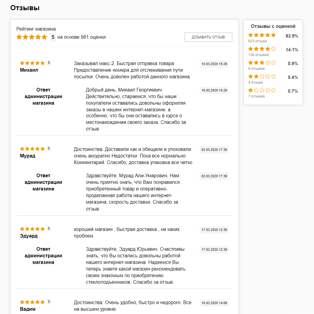 За восемь лет работы (2013 – 2021 гг.) более 3 000 отзывов собрано при помощи сервиса Google Отзывы клиентов и оставлено нашими покупателями на Яндекс.Маркете, а также на нашем сайте.